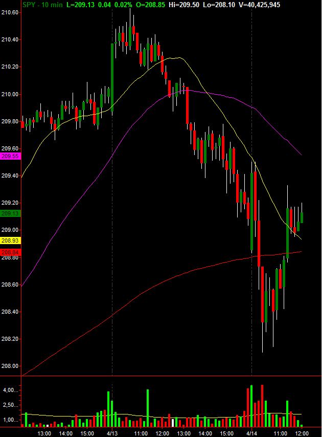 bull flag . Long as a day trade at $209.10. Target 50ma $209.50, stop intra day close below $208.85.